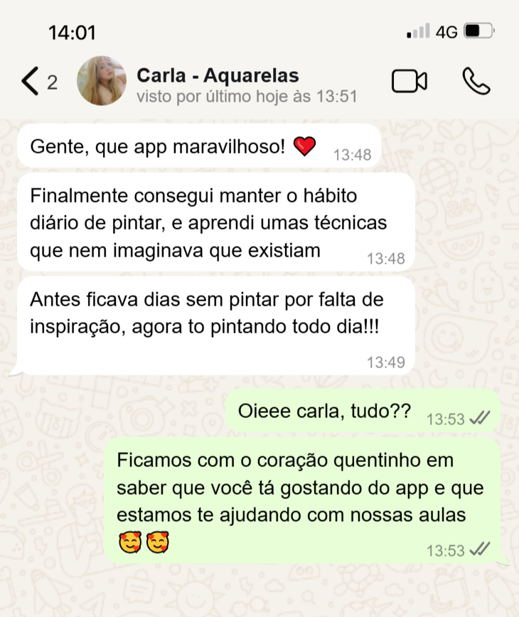 Um app com videoaulas completas do zero ao avançado, mais de 500 ideias de pinturas, e uma comunidade incrível no WhatsApp!